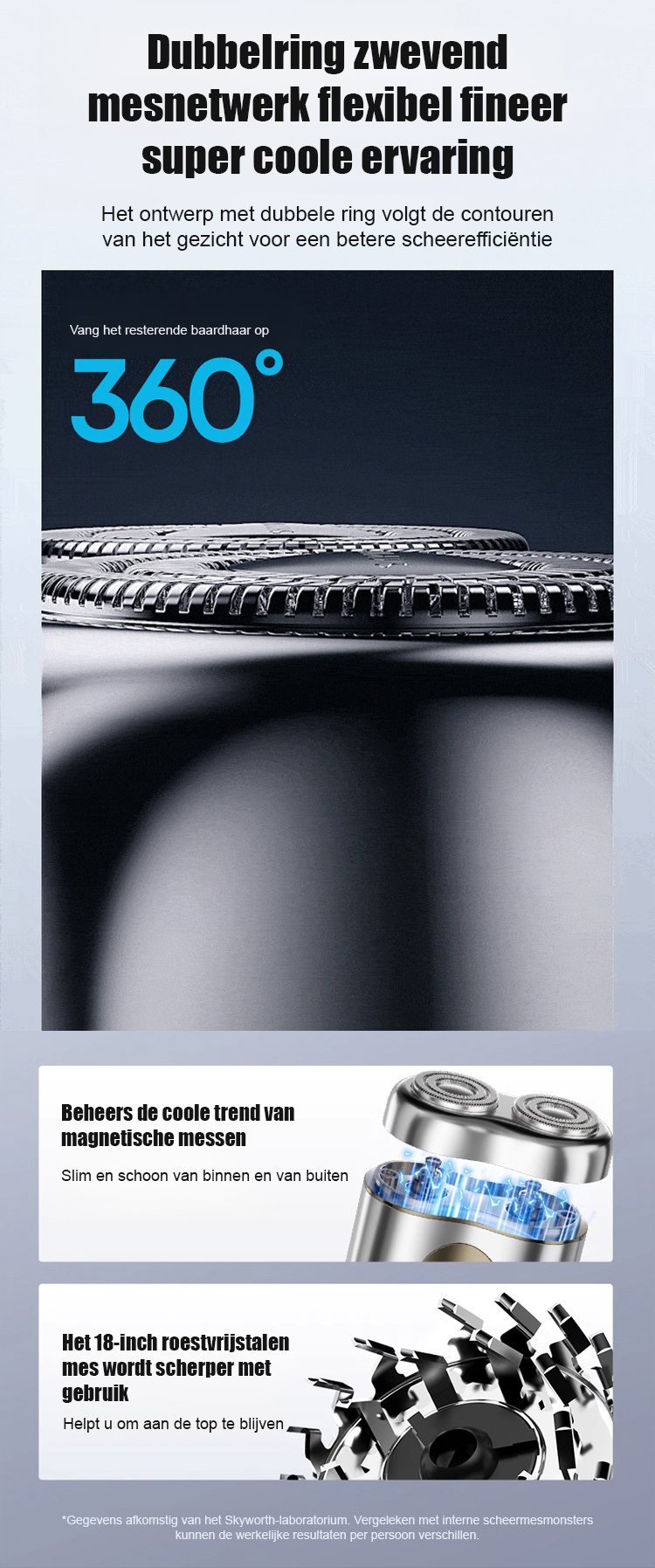 Ervaar een gladde scheerbeurt met dubbele ringen en roterende kracht!